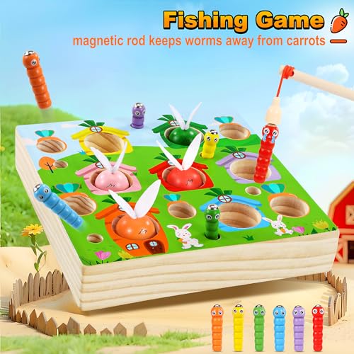 COOLJOYA Giochi di Pesca per Bambini | 3-in-1 Montessori, Magnetico, in Legno | Educativo, Regalo 2 3 4 5 Anni