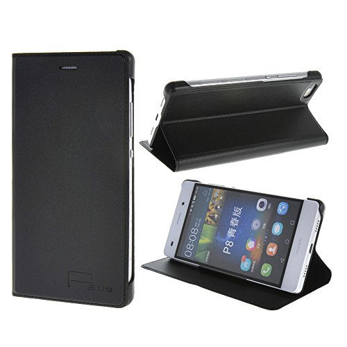 COOLKE PU Pelle con View Window Protettiva Flip Custodia Case Cover per Huawei P8 lite - Nero