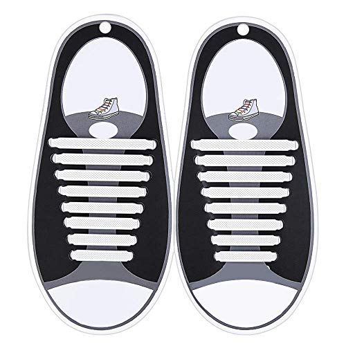 Coolnice Lacci Elastici No Tie Lacci per Scarpe Adulti Donna Pizzo Elastico Impermeabile Pratica in Silicio per Scarpe Sportive Athletic da Corsa Sneaker Boots Bordo e Scarpe Casual-Bianca