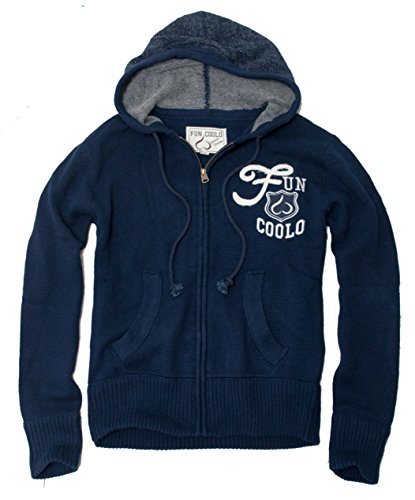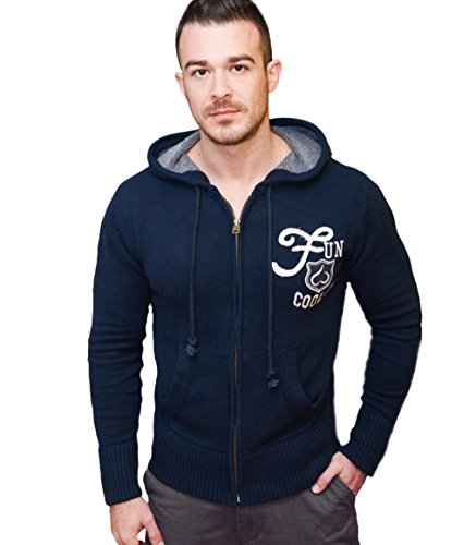 FUN COOLO Felpa con Cappuccio, Pullover, 100% Cotone, e Zip MH4 Blu Navy L