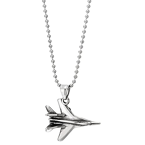 COOLSTEELANDBEYOND Acciaio Inossidabile Annata Ciondolo di Aereo da Combattimento Aereo, Collana con Pendente da Uomo, Palla Catena 60CM