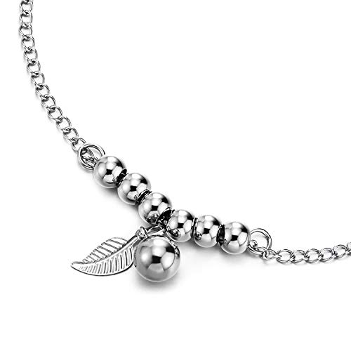 COOLSTEELANDBEYOND Acciaio Inossidabile Cavigliera da Donna con e Perlina Collegamento Chain Stringa di Pendenti Foglia e Palla Regolabile