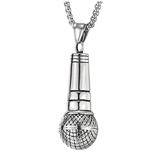 COOLSTEELANDBEYOND Acciaio Inossidabile Microfono Ciondolo, Collana da Uomo, Catena Grano 75CM