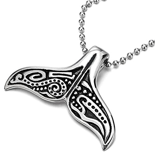 COOLSTEELANDBEYOND Annata Balena Delfini Coda Ciondolo, Collana con Pendente Uomo Donna, Acciaio Inossidabile, Palla Catena 60CM