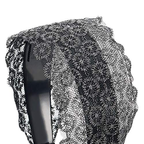 COOLSTEELANDBEYOND 80's Annata Boho Chic Largo Fiancata Argento Nero Fiore Floreale Pizzo Capelli del Cerchio Fascia Bandana Capelli Corona