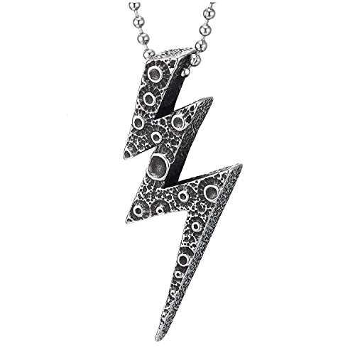 COOLSTEELANDBEYOND Annata Texture Fulmine Ciondolo, Collana con Pendente da Uomo Donna, Acciaio Inossidabile, Palla Catena 75CM
