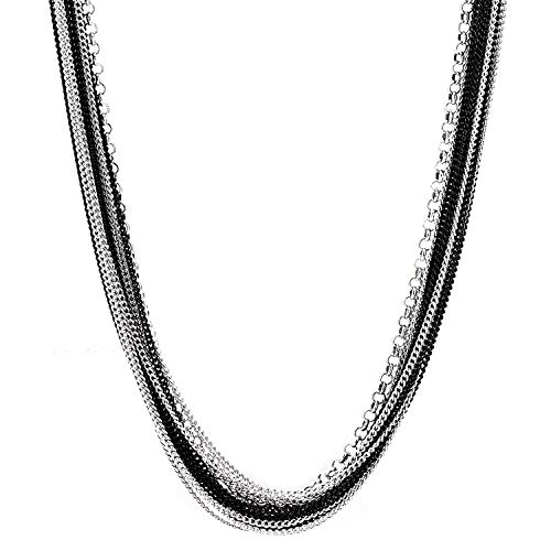 COOLSTEELANDBEYOND Argento Nero Multi Strati Catena Lunga Statement Collare Pendente con Collana con Cristallo Catena Abito da Sera