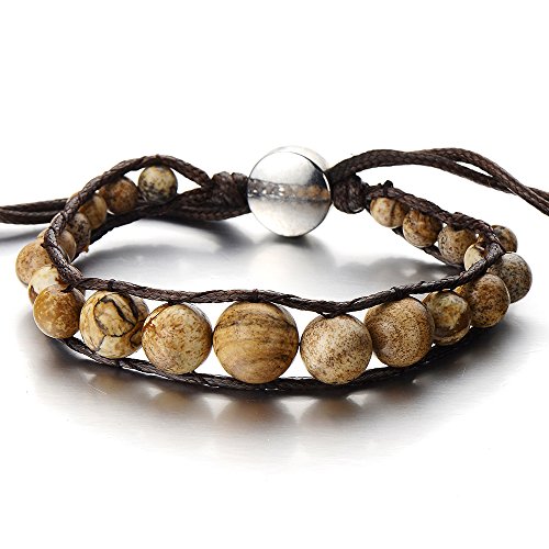 COOLSTEELANDBEYOND Braccialetto di Perline, Bracciale da Uomo Ragazzi, 18mm Tibetan Beads Buddhist Prayer Mala, Sintetico Agata