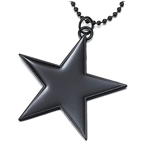 COOLSTEELANDBEYOND Ciondolo con Stella, Nero Collana con Pendente da Uomo Donna, Palla Catena 68CM