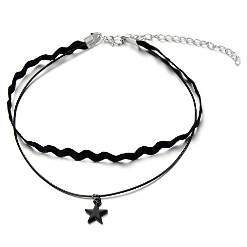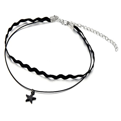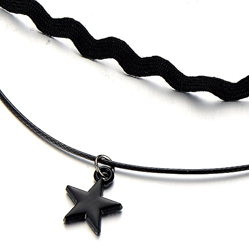 COOLSTEELANDBEYOND Collana Girocollo Choker Nero Collana da Donna, Ciondolo, Nero Stella Charm Pendente