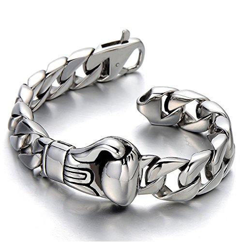COOLSTEELANDBEYOND Design Unico, Guantoni da Boxe Barbozzale Braccialetto, Bracciale da Uomo, Acciaio Inossidabile, Lucido
