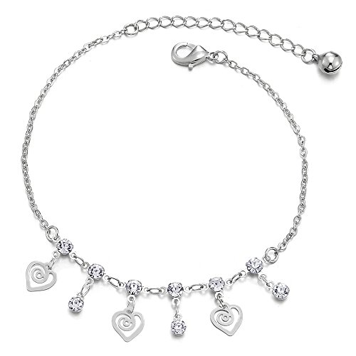 COOLSTEELANDBEYOND Donna Collegamento Chain Cavigliera con Turbine Cuore Charms, Zirconie e Campana