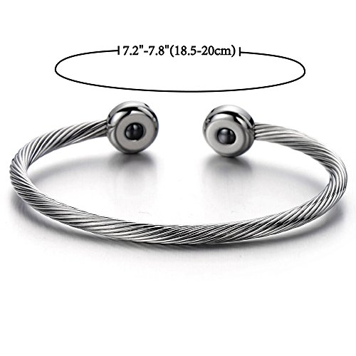 COOLSTEELANDBEYOND Elastico Regolabile Braccialetto del Polsino, Bracciale da Uomo, Acciaio, Magnetica, Cavo Intrecciato, Colore Argento