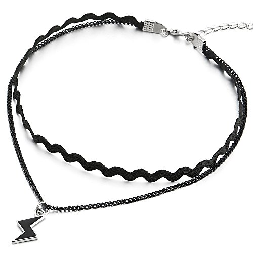 COOLSTEELANDBEYOND Due File Nero Collana Girocollo Choker Collana da Donna, Ciondolo, Catena e Fulmine Bullone Charm Pendente