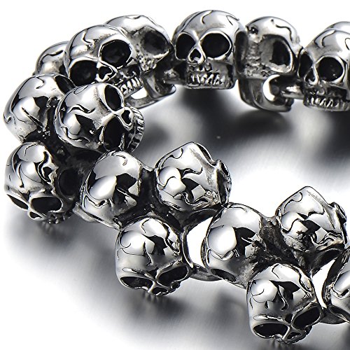 COOLSTEELANDBEYOND Gotico, Punk, Bracciale da Uomo, Braccialetto per il Ragazzo, Grande Cranio Doppi Teschi, Colore Argento, Lucidato a Specchio