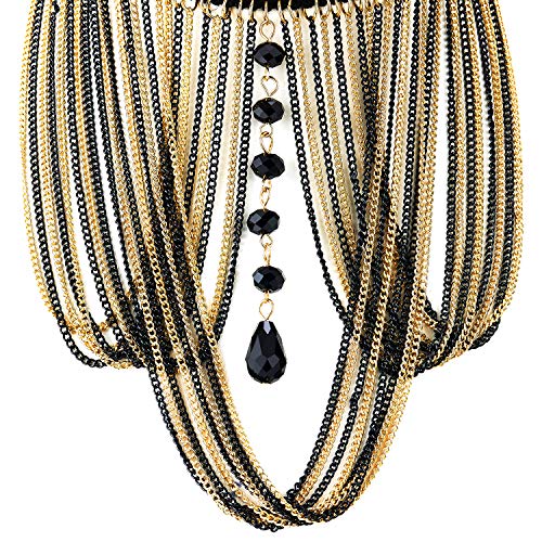 COOLSTEELANDBEYOND Gotico Vittoriano Nostalgico Collana Girocollo Choker Paillettes Palla Catena Perlina Catena Nappa Oro Argento Nero