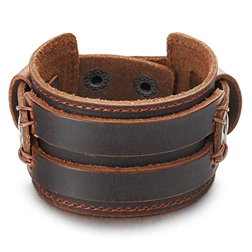 COOLSTEELANDBEYOND Grande Uomo Marrone Braccialetto di Cuoio, Bracciale Vera Pelle, Fascia di Polso, con Bottoni a Pressione