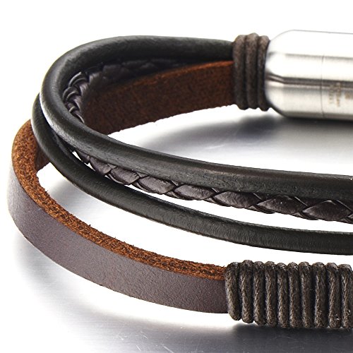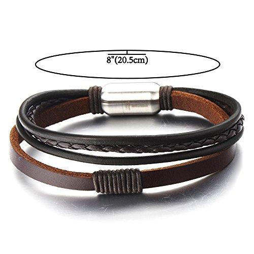 COOLSTEELANDBEYOND Handmade Uomo Donna Handmade Uomo Donna Braccialetto di Cuoio, Fascia di Polso, Vera Pelle Nera, Acciaio Chiusura Magnetica