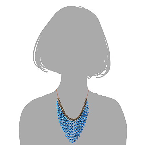 COOLSTEELANDBEYOND Blu Legno Perlina Nappa Statement Bavoir Girocollo Choker Collana Multi Strati Pendenti con Ottone Invecchiato Perlina
