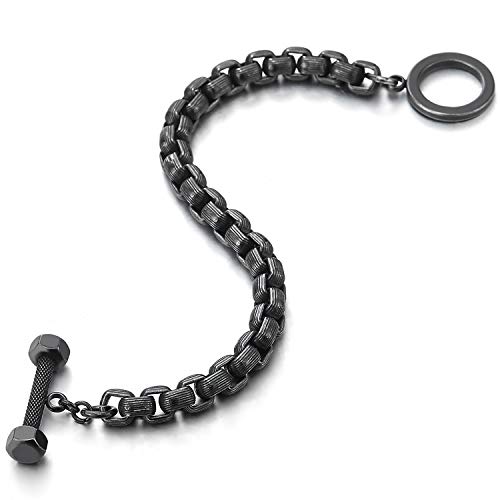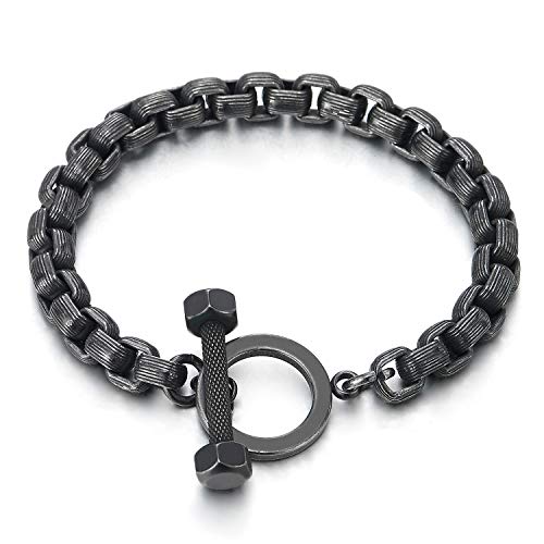 COOLSTEELANDBEYOND Maschile Uomo Acciaio Strisce Collegamento Chain Bracciale con Bilanciere Chiusura Gancio, Braccialetto, Finitura Ruvida
