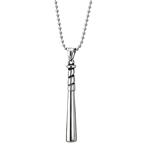 COOLSTEELANDBEYOND Mazza da Baseball con Ciondolo, Collana con Pendente da Uomo, Acciaio, Palla Catena 75CM, Lucido