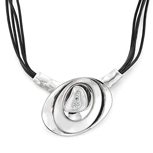 COOLSTEELANDBEYOND Moda Chic Collana Girocollo Choker Statement Collana, Grigio Strass Impilati Ovale Charms Pendente Pelle Corda