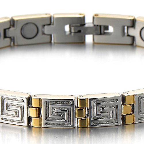 COOLSTEELANDBEYOND Motivo Chiave Greco, Bracciale da Uomo, Acciaio Inossidabile, Magnetica, Link, Braccialetto, con Magneti, Lucido e Satinato