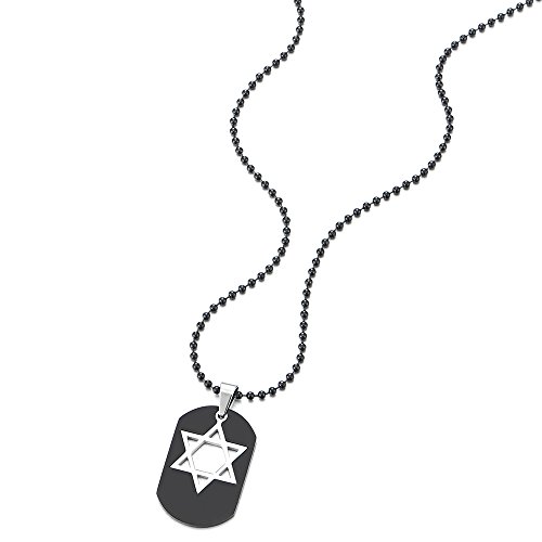 COOLSTEELANDBEYOND Negro Dog Tag Intarsiato con Argento Stella di David Collar con Colgante de Hombre, Acero