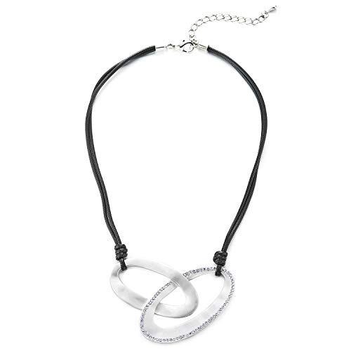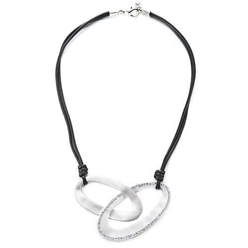 COOLSTEELANDBEYOND Nero Cotone Corda Bavoir Girocollo Choker Collana Bianco Argento Colore Ovale Metallo Charms Chain Pendente con Strass