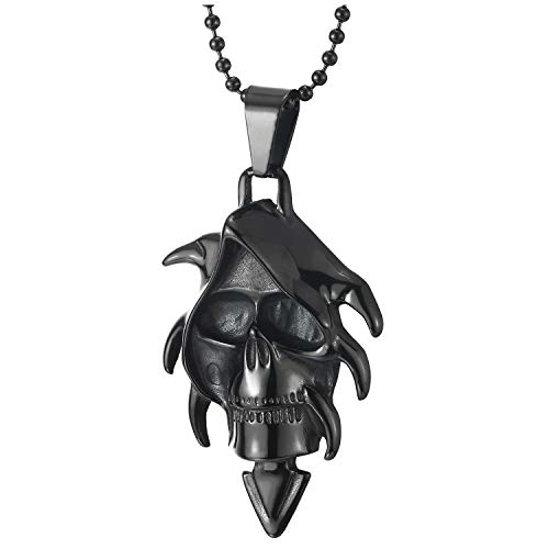 COOLSTEELANDBEYOND Nero Freccia Testa Strega Cranio Collana con Pendente da Uomo, Ciondolo Teschio, Acciaio, Stile Gotico Palla Catena 75CM
