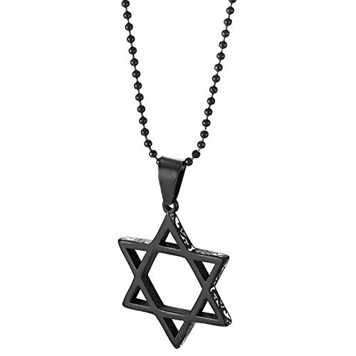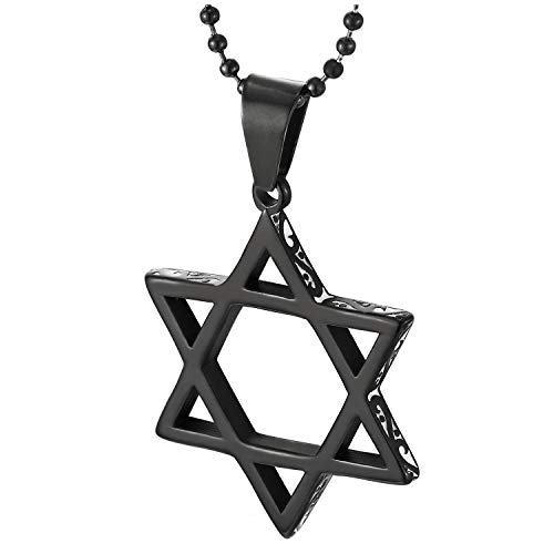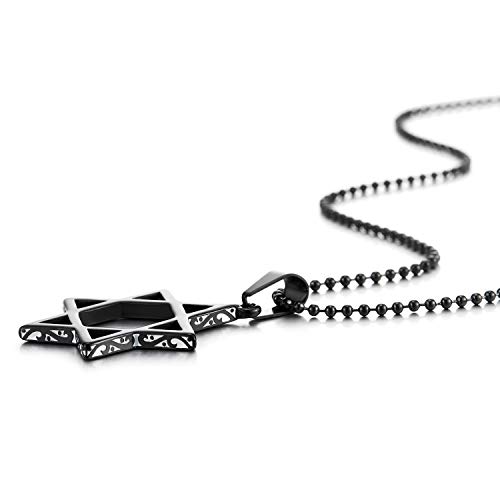 COOLSTEELANDBEYOND Nero Stella di David Ciondolo, Collana con Pendente da Uomo Donna, Acciaio, Tribal Tatuaggio Modello e con Smalto Bianco