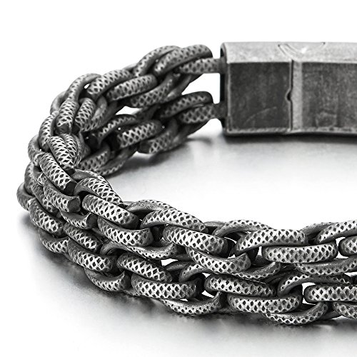 COOLSTEELANDBEYOND Nuovo Stile Uomo Acciaio Inossidabile Bracciale Intrecciata Collegamento Chain Braccialetto, Finitura Ruvida