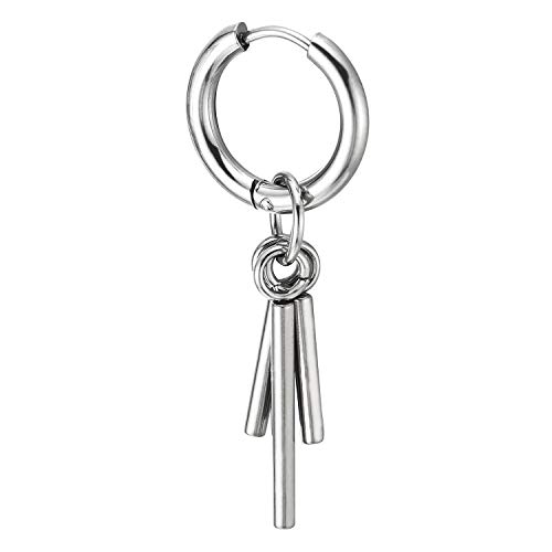 COOLSTEELANDBEYOND 2 Orecchini a Cerchio con Pendenti Cilindro Bastone Bar, Orecchini da Uomo Donna, Acciaio Inossidabile
