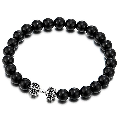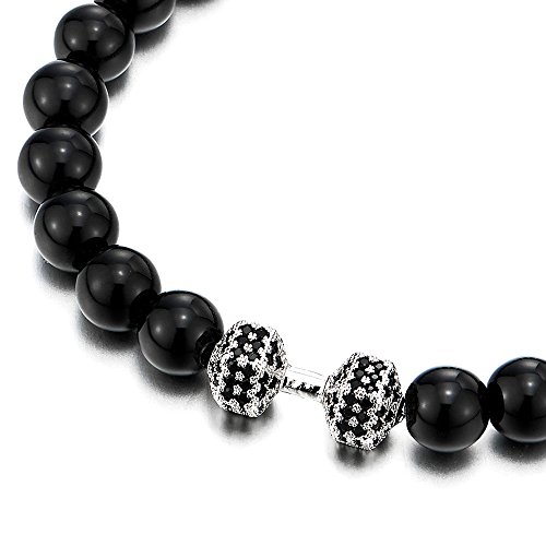 COOLSTEELANDBEYOND Perlina Braccialetto di 8MM Nero Onice con Nero Zirconi Bilanciere Manubrio, Bracciale da Uomo Donna, Prayer