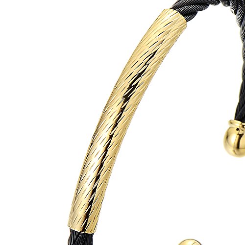 COOLSTEELANDBEYOND Regolabile Elastico Braccialetto del Polsino, Bracciale da Uomo Donna, Acciaio, Cavo Intrecciato, Oro Nero Bicolore