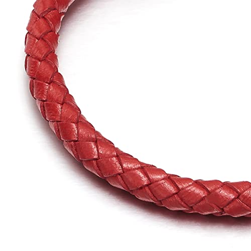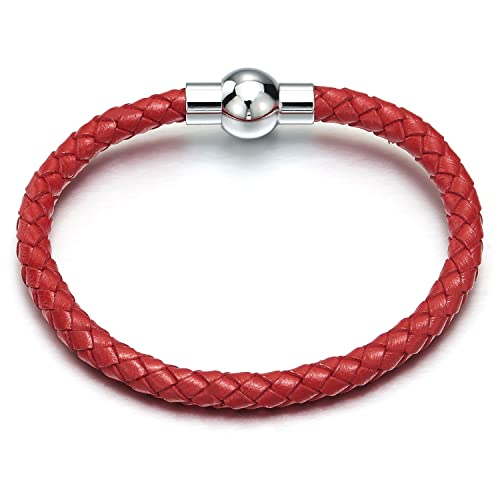 COOLSTEELANDBEYOND Rosso Sottile Braccialetto di Pelle Intrecciata da Uomo Donna, Bracciale Fascia di Polso, Chiusura Magnetica