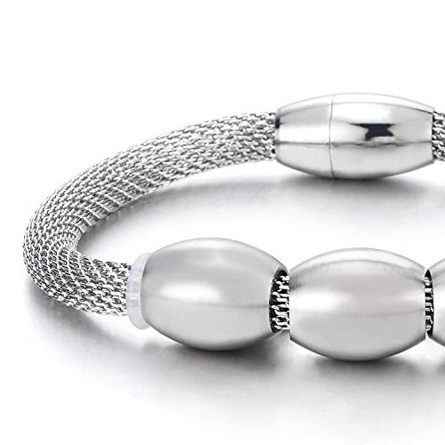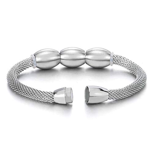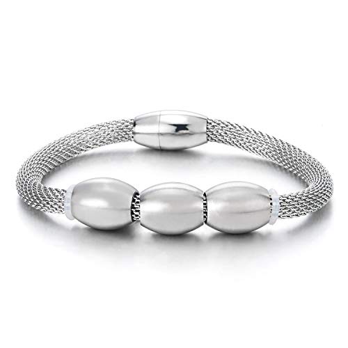 COOLSTEELANDBEYOND Tre Satinato Ovale Charm Bracciale da Donna Ragazze, Acciaio Inossidabile Braccialetto di Fascino