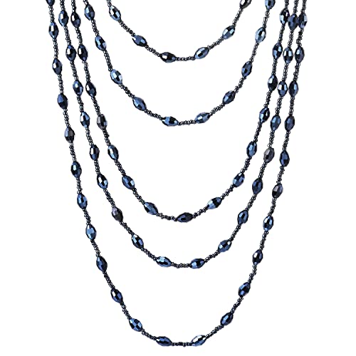COOLSTEELANDBEYOND Blu Scuro Statement Dichiarazione Collana Multi Strati Lunga Catena con Ovale Cristallo Perline Charms Pendente