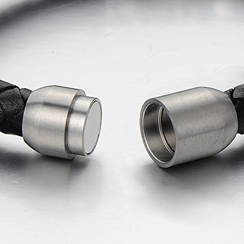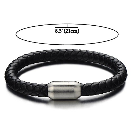 COOLSTEELANDBEYOND Uomo Braccialetto di Cuoio Intrecciat, Uomo Bracciale di Nero Pelle Intrecciata, Acciaio Chiusura Magnetica