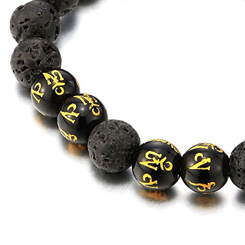 COOLSTEELANDBEYOND Uomo Donna 10MM Bracciale Perline con Pietra Vulcanica Vulcano, Tibetan?Mantra Om Mani Padme Hum, Prayer Mala
