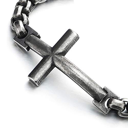 COOLSTEELANDBEYOND Uomo Donna Nero Acciaio Inossidabile Lato Orizzontale Laterale Croce Collegamento Chain Bracciale, Colore Argento