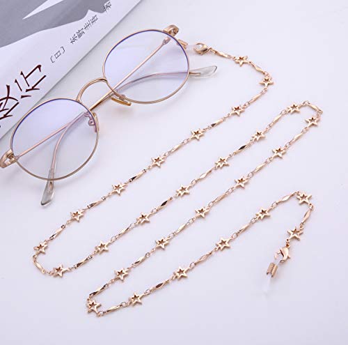 Cooltime, Catenella portaocchiali con stelle a cinque punte, accessorio da uomo e da donna Gomma dorata-bianca