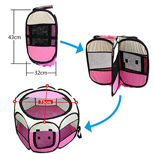 Coolty Recinto Pieghevole per Cagnolini, Cani, Gatti, Animali per Interno o Esterno (S, Rose)