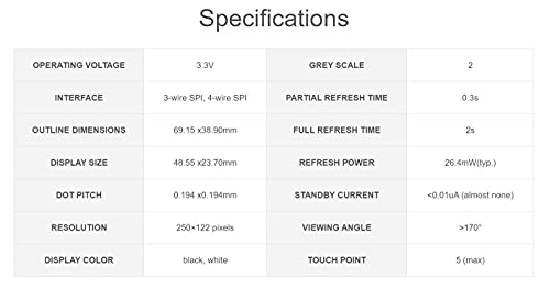 2.13" capacitive touch e-Paper display, 5-point touch, 250×122 pixels