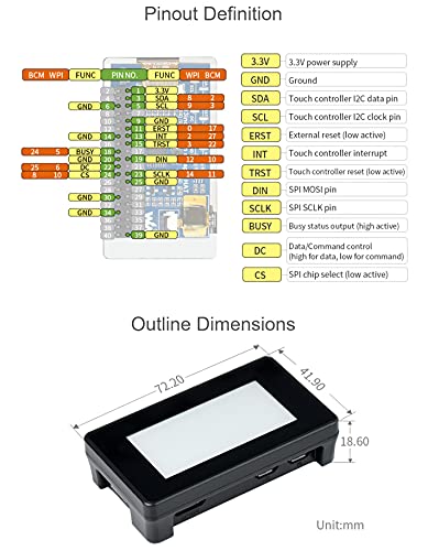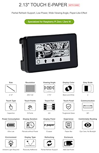 Coolwell 2.13inch Touch E-Paper E-Ink Display Module For Raspberry Pi Zero/Zero W, with ABS Protection Case, 5-point Touch,250×122 Pixels