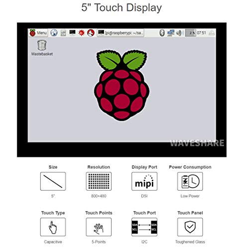 Coolwell Waveshae 5inch Capacitive Touch Display for Raspberry Pi Series And CM3/3+, 800×480, DSI Interface Up to 5-Points Touch