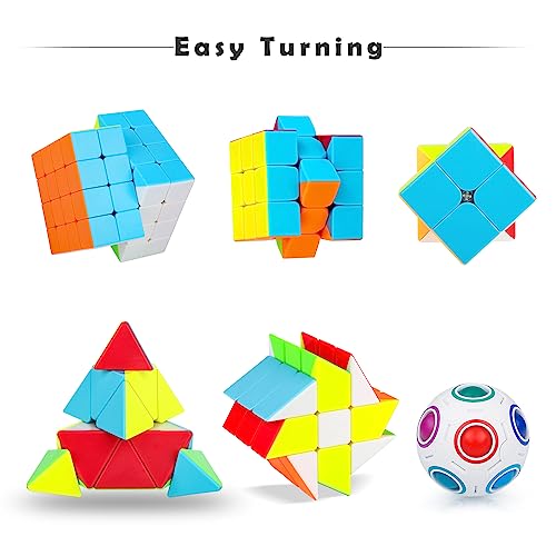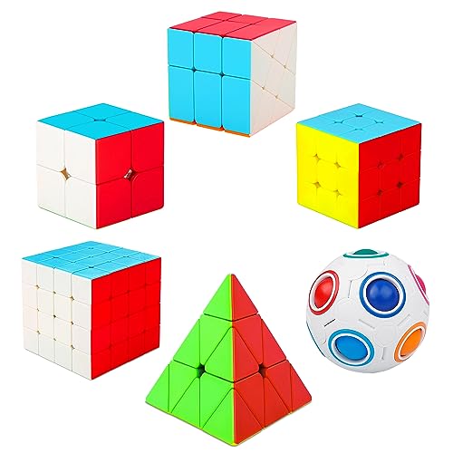 Coolzon Set di 6 cubi magici Speed Magic Cubes Pyraminx + 2x2 + 3x3 + 4x4 + Magic Rainbow Ball + Fenghuolun Magic Puzzle Cube Giocattoli per ragazzi ragazze bambini adulti