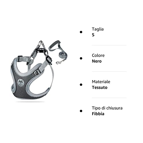 Coolzon Pettorina Cane Taglia Piccola per Gatto Imbracatura Traspirante Pettorina Riflettente Regolabile La Pettorina per Cani con Guinzaglio è Adatta per Corsa Passeggiate Jogging Nero(S)