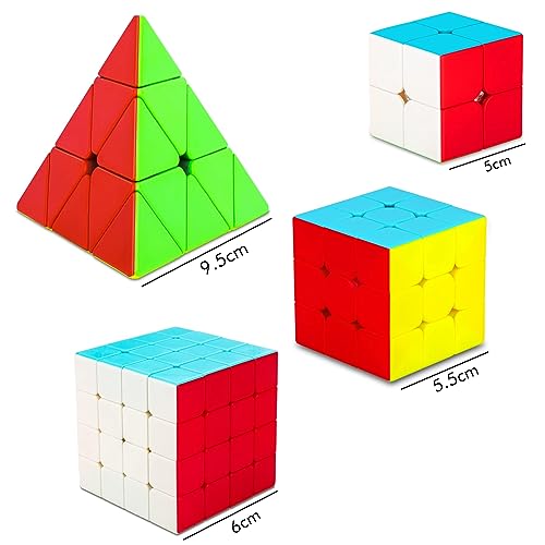 Set di cubo di velocità con mossa fluida: Coolzon Speed Cube pack di 4 (2x2x2 cubo + 3x3x3 cubo + cubo + 4x4x4 cubo + piramide cubo), con grande taglio ad angolo (torsione veloce e riproduzione regolare) e struttura a zero pop (stabilità) Meravigliosa esperienza di velocità come nessun altro. È un must-have la tua raccolta di cubetti di velocità.