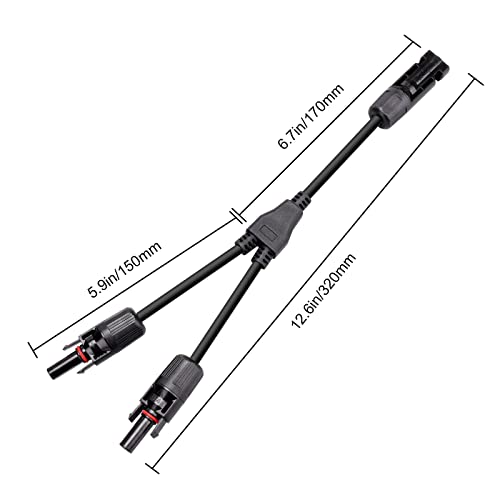 【Contatti forniti】 I cavi a Y (F/M/M) e (M/F/F) di Coomoor vengono utilizzati per completare gli array di pannelli solari (PV), in genere per applicazioni parallele. Rosso al rosso, nero al nero.